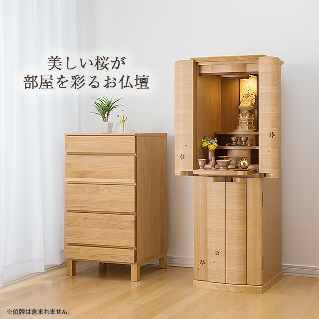 【仏壇】モダン仏壇 染井吉野 台付型(床置き) 桜 花びら入り 45×16号 仏具セット付き 高さ134cm×巾46.5cm 国産(日本製)【送料無料】【設置無料】【仏壇 モダン 仏具 和室 洋室 リビング マンション 家具調仏壇 納骨仏壇 骨壷 骨壺 収納】