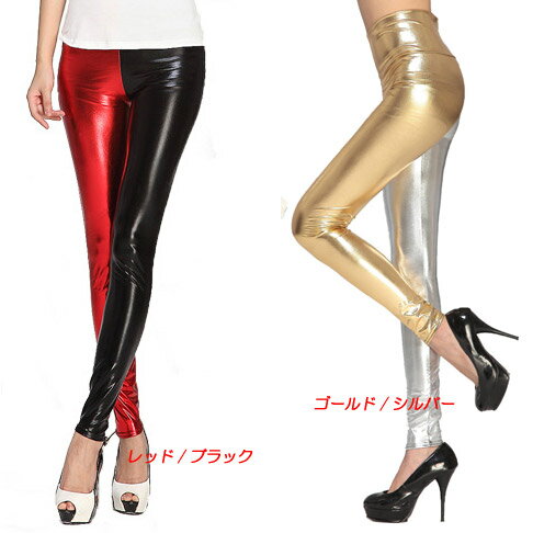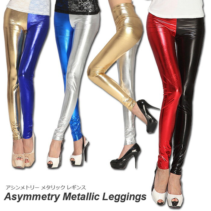 メタリック レギンス 派手な柄(光沢のあるメタリックカラー) レディース スパッツ レギンスパンツ レギパン/パギンス 左右 違う色 人気 アシンメトリー 10分丈 錯覚ダンス コスプレ イベント ダンス ライブ 衣装 ヒップホップ