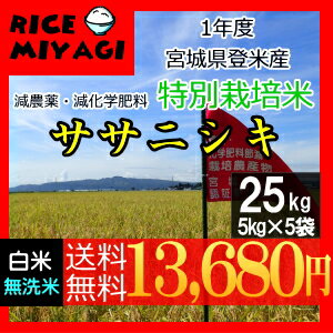 新米30年産【送料無料】【特別栽培米】宮城県認証!宮城県登米産ササニシキ 25kg【送料無料】[白米/無洗米]選択可能小分け(5kg×5袋)可能減農薬・減化学肥料